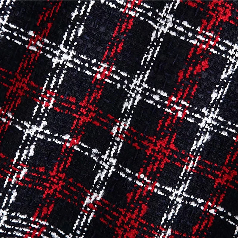 Best Seller Women Fashion Tweed Red Plaid Za Long Jacket 2019 Autumn-winter Female Long Sleeve V-neck Warm Loos